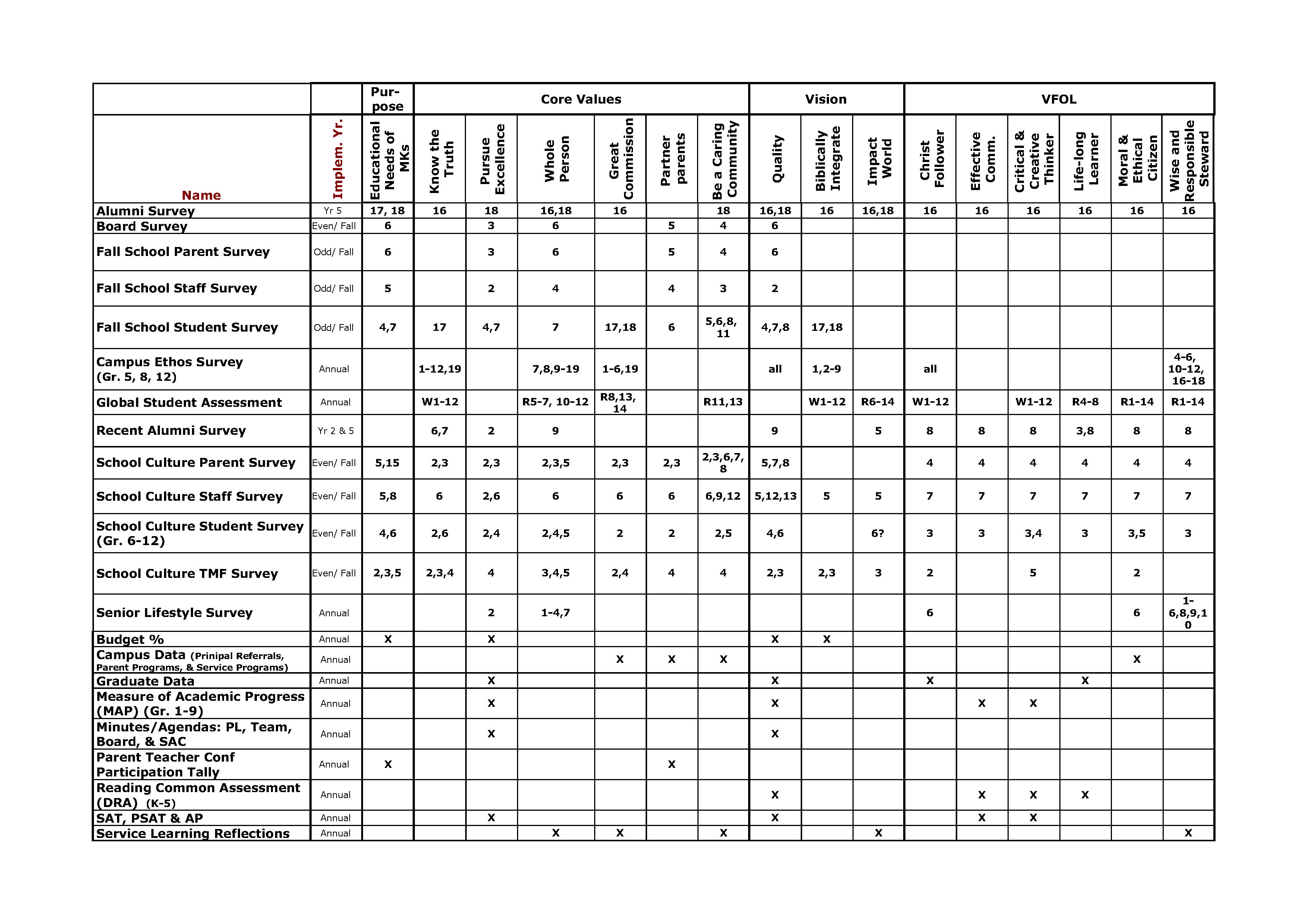 The Core Values position statement established by the Board of Trustees is italicized below. The subsequent bulleted descriptions and Bible references provide a partial explanation of each of these organizational core values.